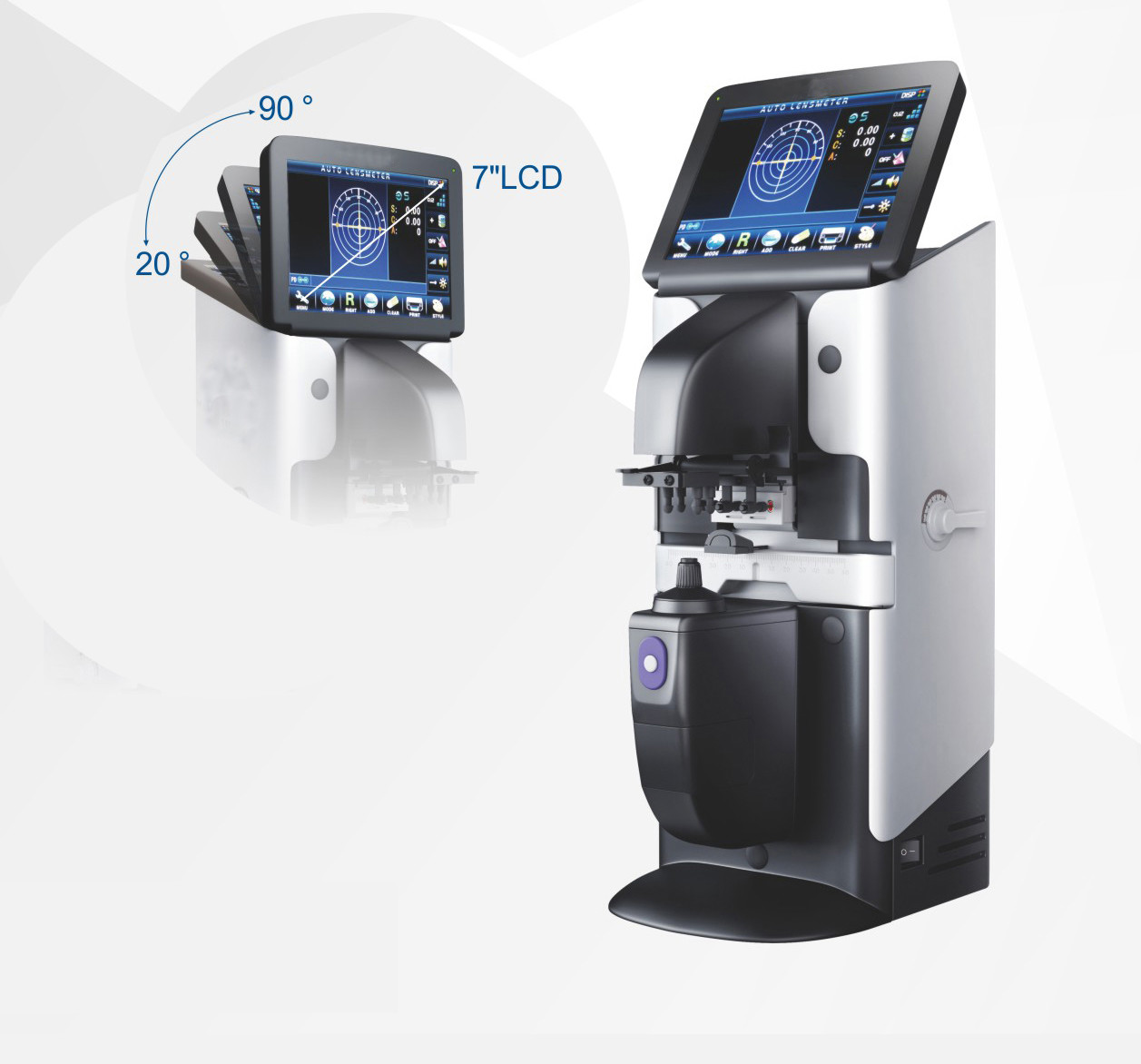 - Dispositivo de prueba de lentes: Lensómetro automático, probador UV, probador de lentes de bloqueo azul, probador de estrés, etc.;